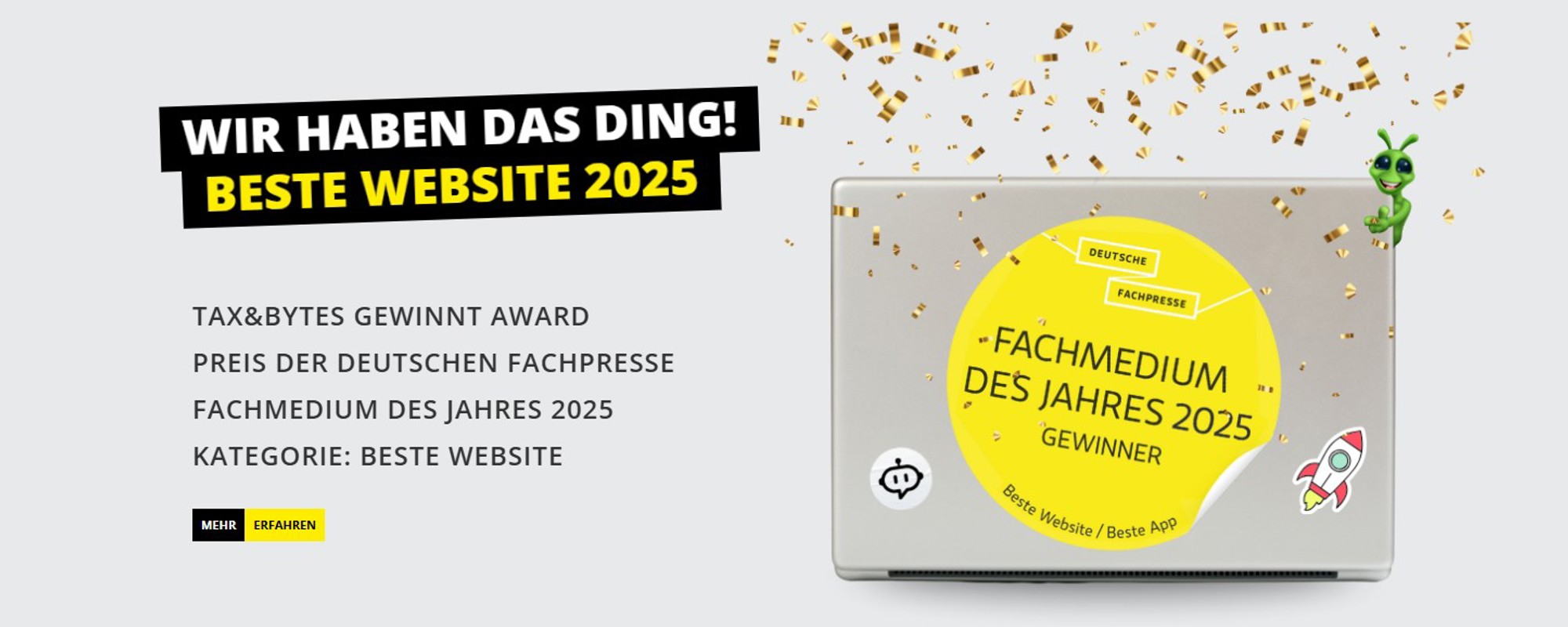 Die Deutsche Fachpresse hat die Webseite tax&bytes unseres Kunden NWB auf den B2B Media Days in Berlin als „Beste Website 2025“ ausgezeichnet.